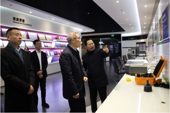 領導一行參觀了天瑞儀器多功能展廳。劉召貴博士首先向蘇州市政協、工商聯長期以來的悉心指導和大力支持表達了感謝。并且為來賓詳細的介紹了天瑞儀器的產品與技術,周俊對天瑞在技術拓展、核心部件研發、市場化發展取得的成就表示了充分的肯定。同時,他也希望天瑞儀器能夠穩中求進,以進促穩,搶抓機遇,做到可持續發展,為地方經濟社會發展作出更大貢獻。