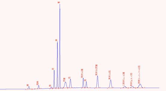 標準PAHs(純度大于96.0%)的色譜圖: