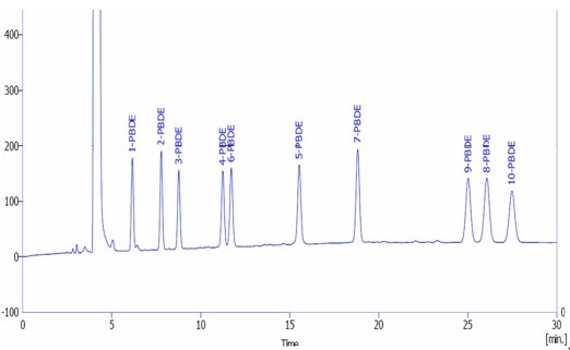 10種多溴聯苯醚標準混合溶液譜圖: