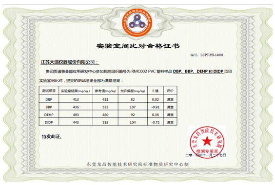 錄2:實驗室間比對合格證書(DBP、BBP、DEHP)