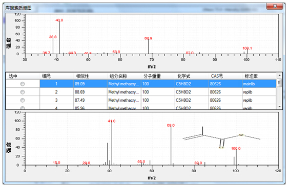 圖2.3 三重峰的質(zhì)譜圖(圖2.2中8.6~8.9 min)經(jīng)NIST2014庫確認(rèn)