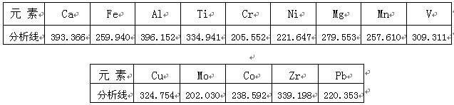 根據ICP軟件譜線庫提供所有元素不同譜線,首先選擇被測元素靈敏度高的譜線,其次考慮不受樣品基體及被測元素相互之間干擾小的譜線的原則,選擇分析線如下。