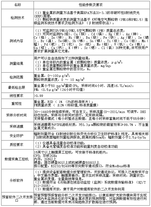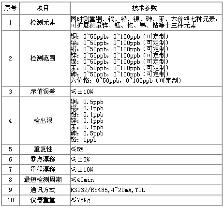 以下列出了大氣重金屬在線分析儀的一些重要技術參數(表1)。