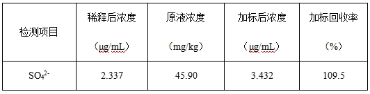 2-)含量,該方法檢出限≤0.18μg/mL,保留時(shí)間Rt定性重復(fù)性RSD為0.15%,SO