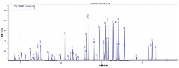 采用GC-MS 6800氣相色譜-質(zhì)譜聯(lián)用儀,測試土壤、沉積物或固體廢物中的多環(huán)芳烴、多氯聯(lián)苯、有機(jī)氯農(nóng)藥、揮發(fā)性有機(jī)物及鹵代烴類物質(zhì),各物質(zhì)分離效果良好,靈敏度高,線性范圍寬,能達(dá)到較好的測試效果。