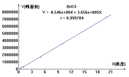 表1. 溴酸根標(biāo)準(zhǔn)曲線濃度(μg/mL)